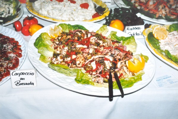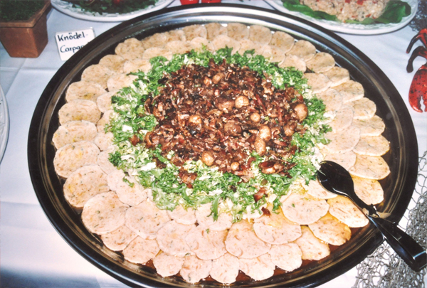 - Südtiroler Knödelcarpaccio mit gebr. Speckstreifen