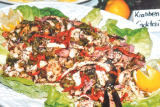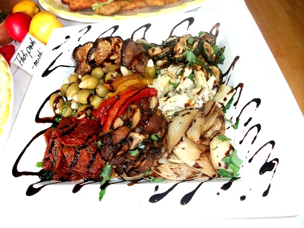 gegrillte Paprikaschoten, gemischte Oliven, gegrillter Knoblauch,