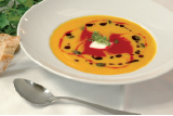 - Kürbiscremesuppe mit Kürbiskernen und Kürbiskernöl